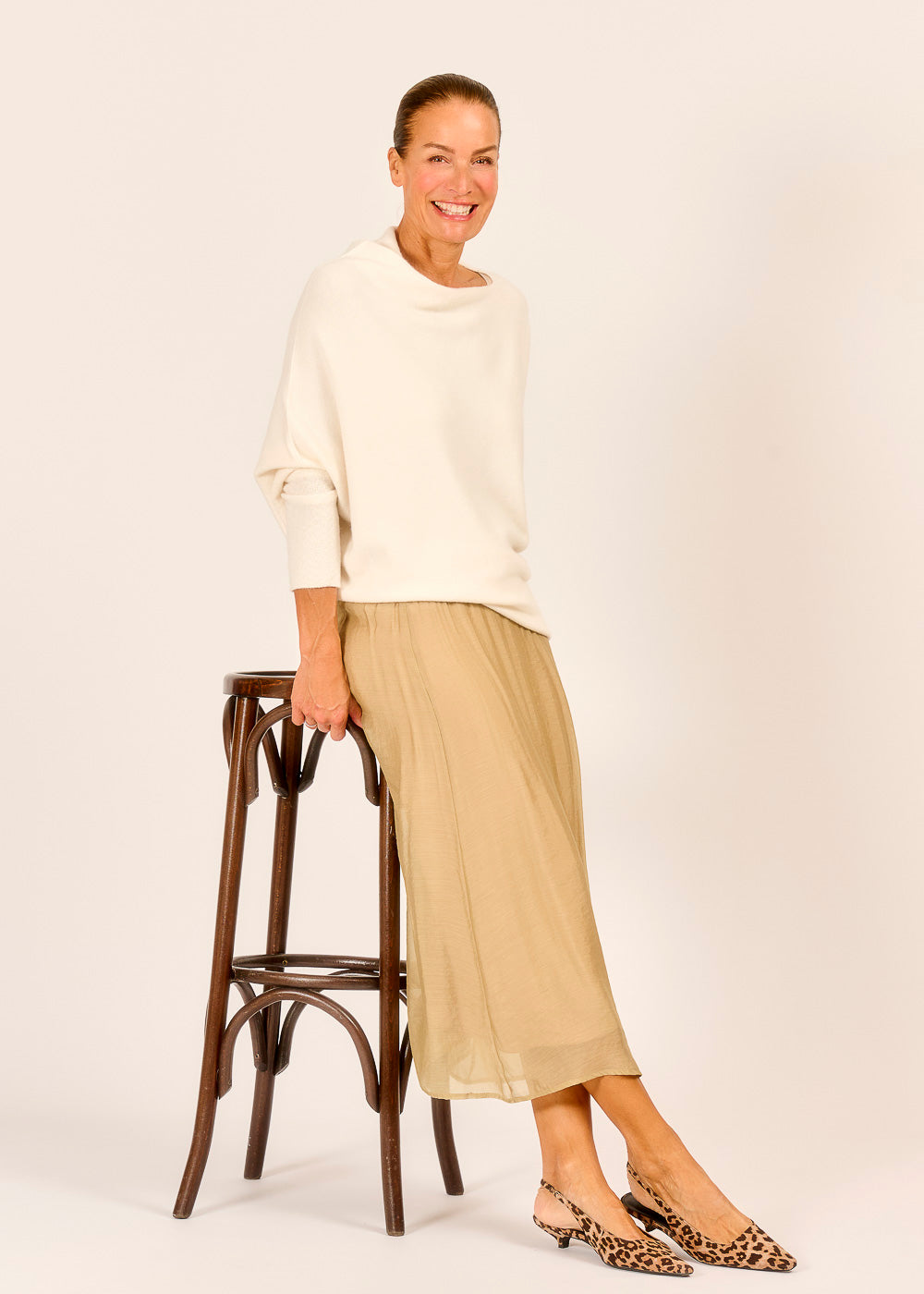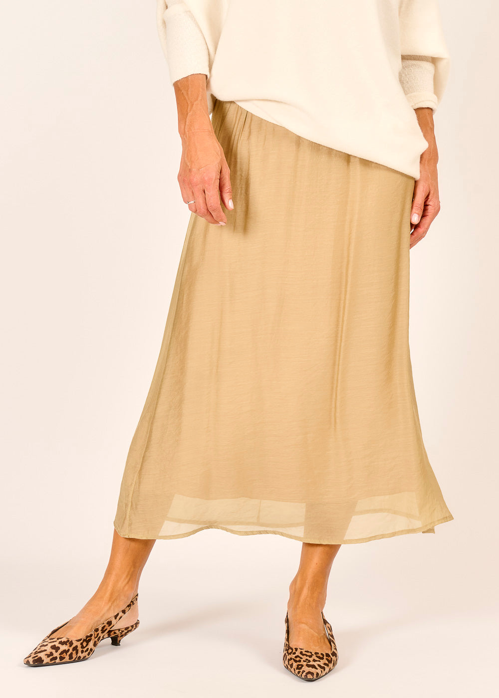 Dieser lange Fashionrock vereint fließende Leichtigkeit mit eleganter Raffinesse – das Material aus 80 % Lyocell und 20 % Nylon schmeichelt jeder Bewegung wie feiner Tüll. Sein eleganter Fall macht ihn zum perfekten Begleiter für besondere Anlässe oder stilvolle Alltagslooks. Ein Rock, der Eleganz, Komfort und modisches Statement auf wundervolle Weise vereint.