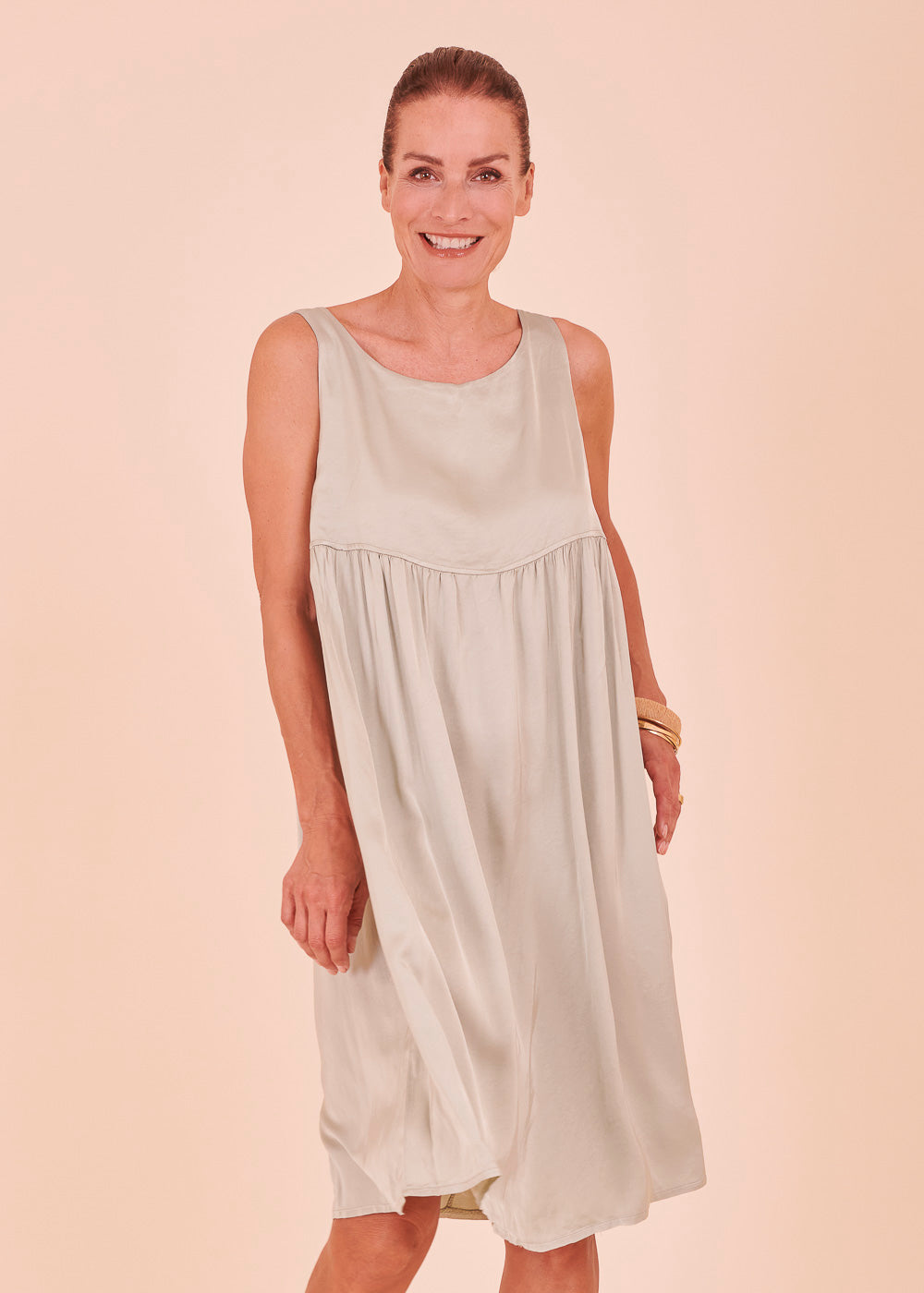 Willkommen in der Welt zeitloser Eleganz und atemberaubender Schönheit! Unser ärmelloses, edles Kleid vereint raffinierten Tragekomfort, der Dich strahlen lässt. Das Kleid ist aus hochwertigem, schimmerndem Stoff gefertigt, der sanft über Ihre Figur fließt und dir ein unvergleichliches Tragegefühl schenkt. Der elegante Schnitt betont deine Schultern und verleiht dir eine anmutige Ausstrahlung.