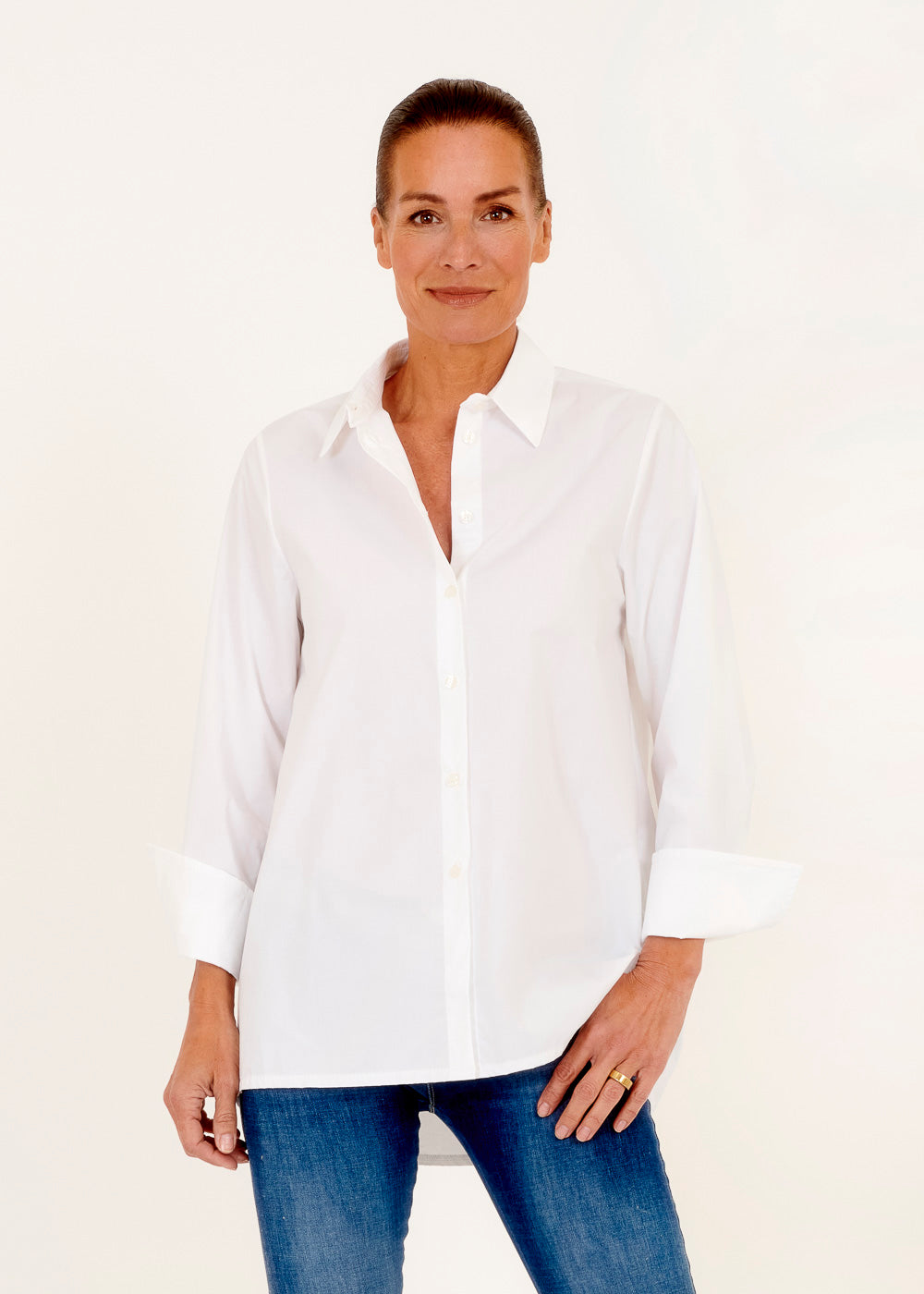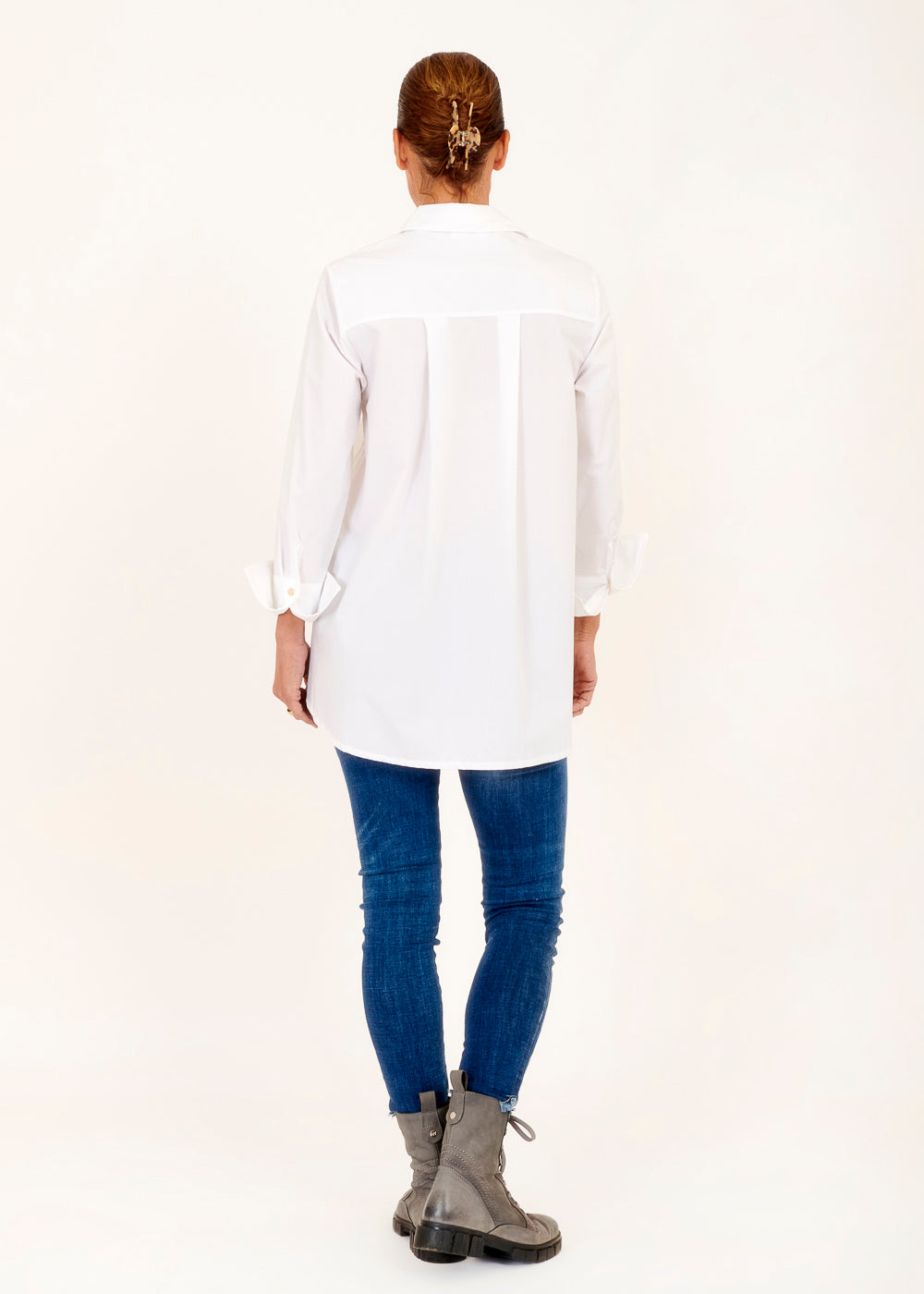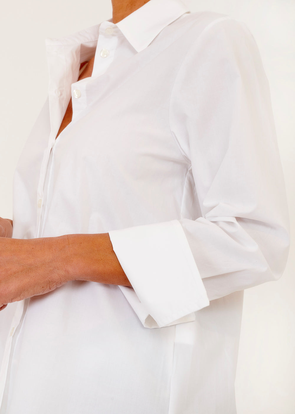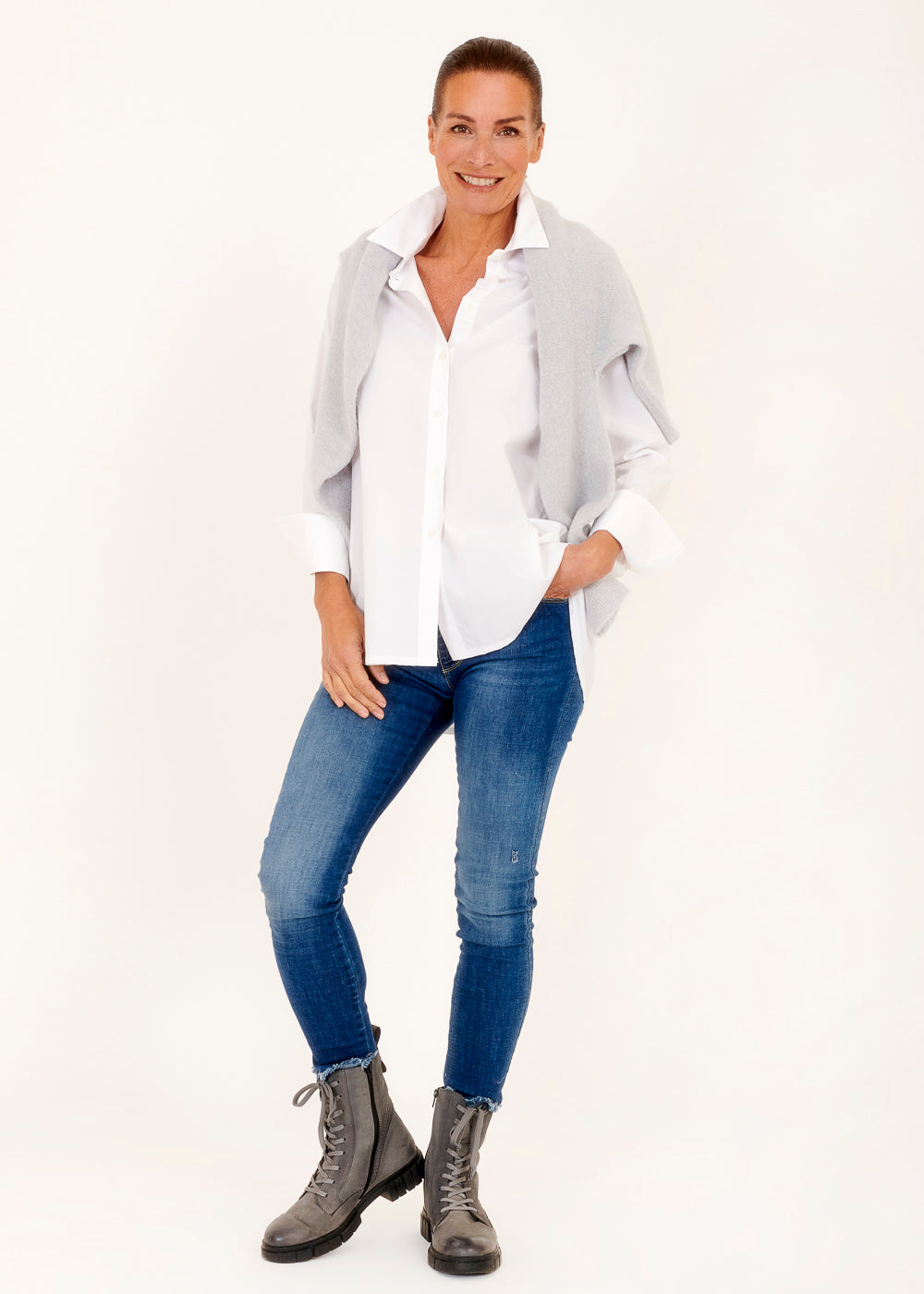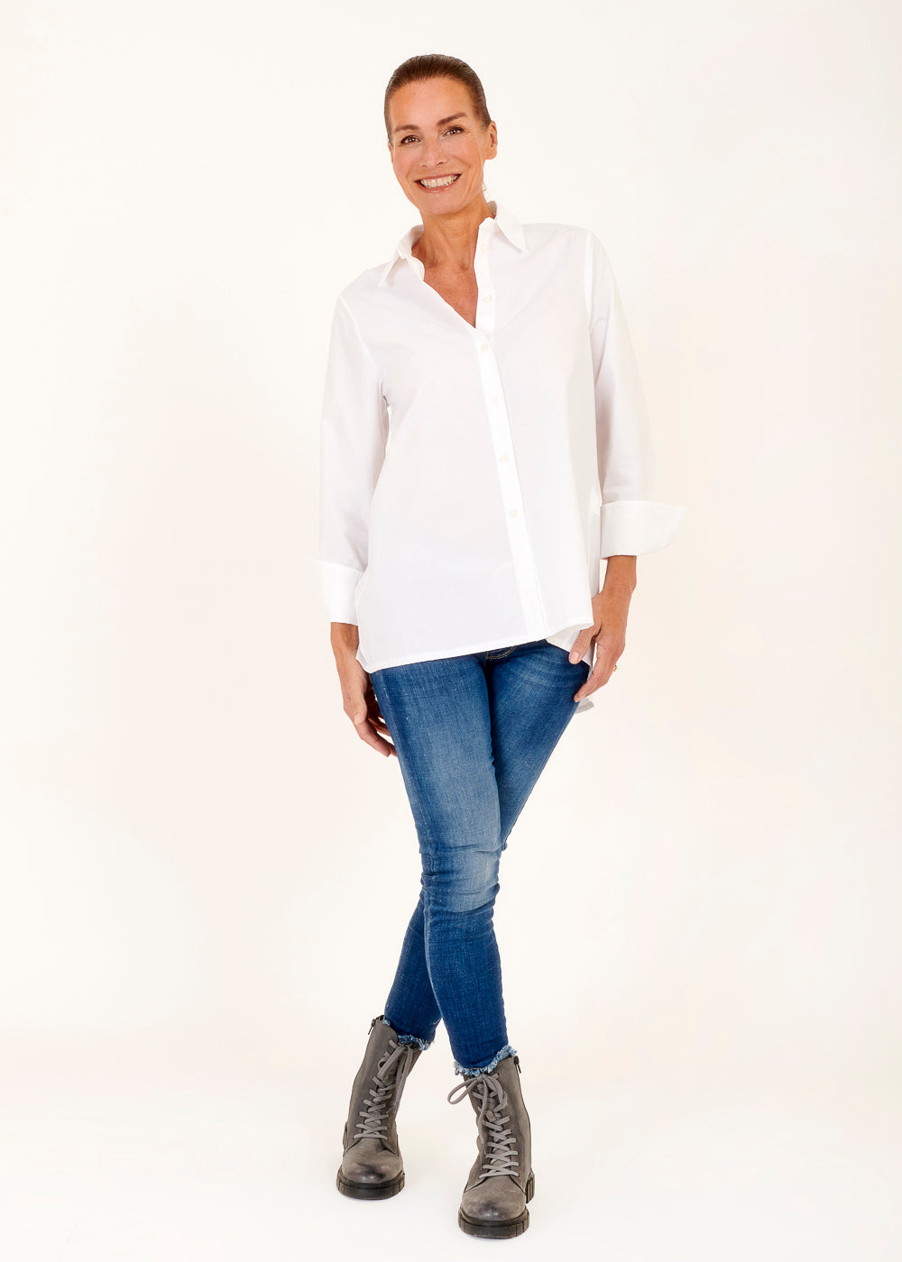 Hergestellt aus hochwertigem Material und mit besonderen Details gefertigt, wird diese Bluse schnell zu Ihrem Favoriten im Kleiderschrank. Lasse dich von der italienischen Raffinesse inspirieren und setze mit dieser Bluse mit hoher Manschette und goldenem Knopf ein Statement der zeitlosen Mode.Die durchgeknöpfte Knopfleiste verleiht der Bluse nicht nur eine klassische Note, sondern ermöglicht auch eine mühelose Anpassung und vielseitige Styling-Optionen. Trage sie lässig über Jeans für einen entspannten Look oder kombinieren Sie sie mit einer eleganten Hose für einen formellen Anlass.