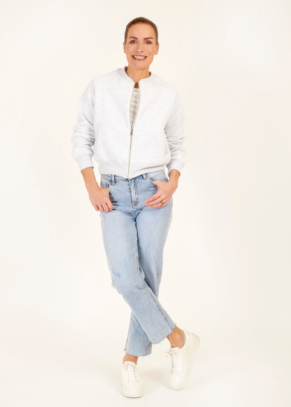 Mit ihrer neutralen grauen Farbe ist diese Bomberjacke ein zeitloses Basic, das in keiner Garderobe fehlen sollte. Egal ob im Frühling, Herbst oder Winter - sie ist immer die richtige Wahl für einen stylischen Auftritt.
