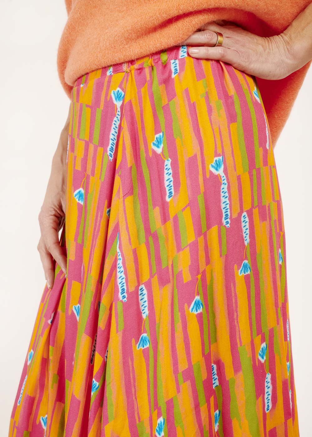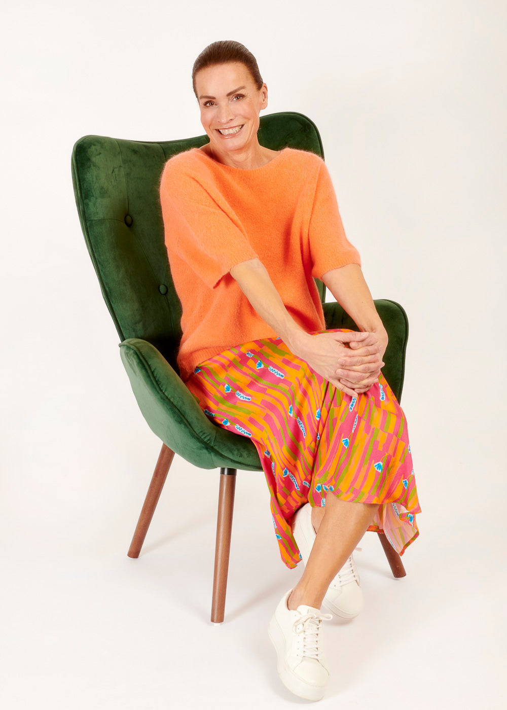 Tauche ein in eine Welt voller Farbe und Muster mit unserem faszinierenden Maxirock. Das lebendige Orange verleihen diesem Stück eine unvergleichliche Ausstrahlung, die sofort ins Auge fällt und für gute Laune sorgt.