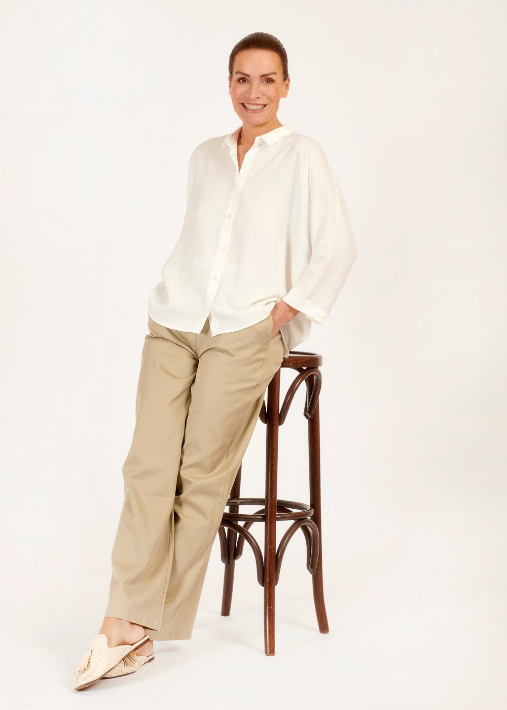 Die fließende Viskose schmiegt sich sanft an deine Haut und sorgt für ein luftiges Tragegefühl, das perfekt für jede Jahreszeit ist. Egal, ob du sie zu einer schicken Hose für das Büro oder zu deiner Lieblingsjeans für einen lässigen Look trägst, diese Bluse ist immer die richtige Wahl.
