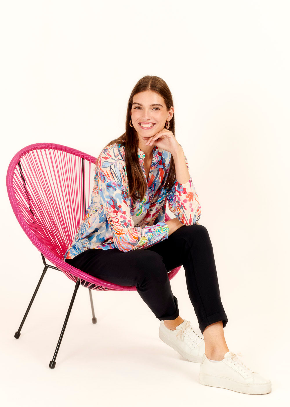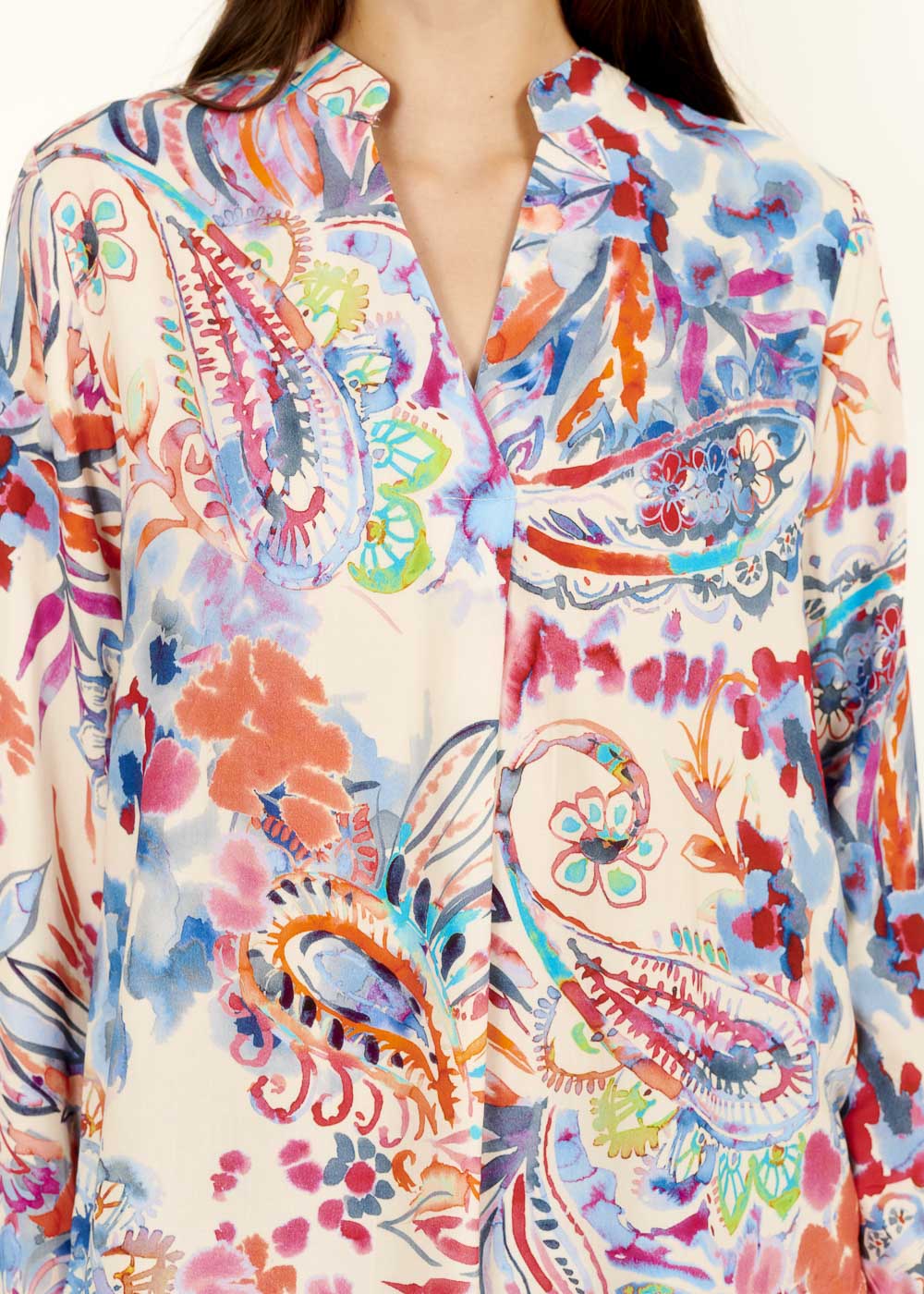 Diese bedruckte Tunikabluse in zartem Celeste verleiht deinem Look eine stilvolle Leichtigkeit. Perfekt für jeden Anlass, kombiniert sie Komfort mit Eleganz.