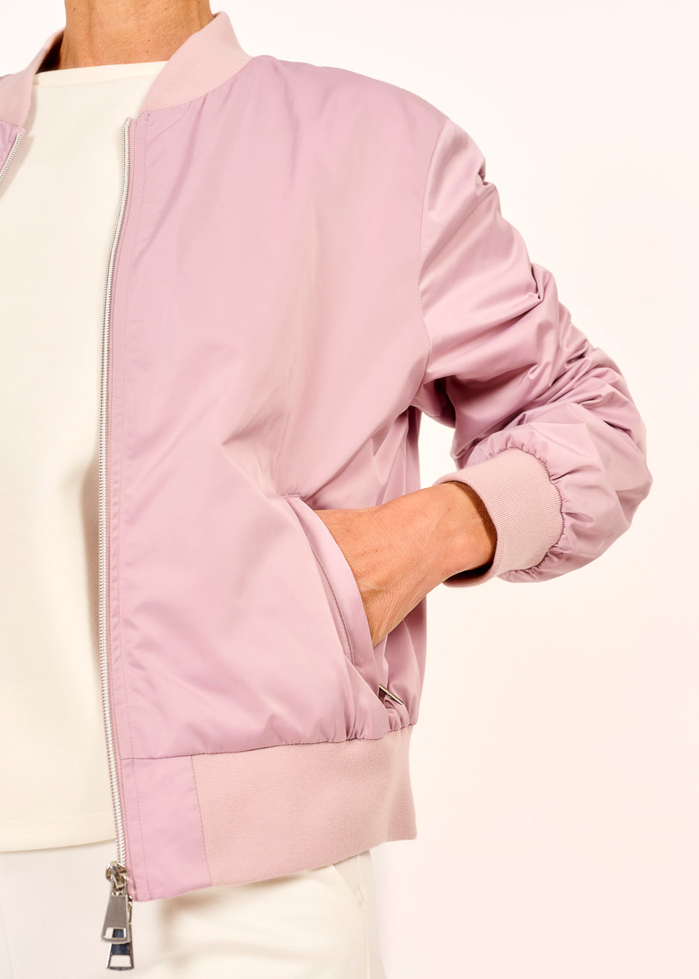 Dieses sportive Blouson in zartem Rosa vereint lässigen Style mit funktionalen Details – perfekt für aktive Tage und urbane Looks. Das atmungsaktive Netzfutter sorgt für angenehmen Tragekomfort, selbst bei Bewegung. Mit seinem modernen Schnitt und der frischen Farbe wird es zum trendigen Begleiter für jede Gelegenheit.