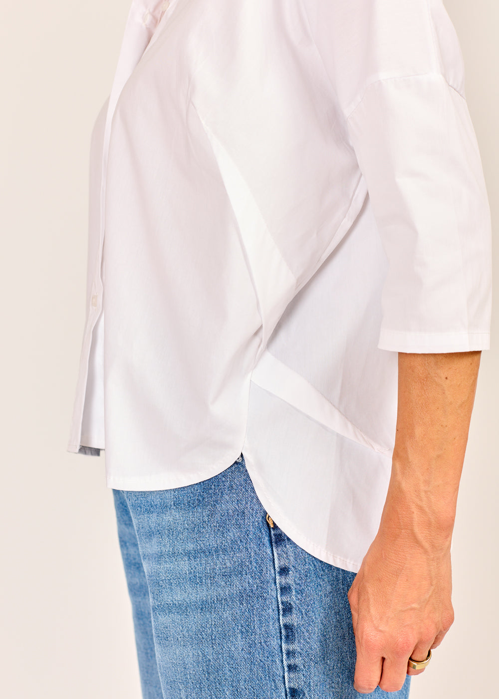 Verleihen Sie Ihrem Outfit zeitlose Eleganz mit dieser stilvollen weißen Bluse, die durch ihren hinten längeren Schnitt eine moderne Note erhält. Das hochwertige Material sorgt für ein angenehmes Tragegefühl und einen eleganten Fall. Perfekt kombinierbar für einen schicken Business-Look oder als lässiger Begleiter für den Alltag.