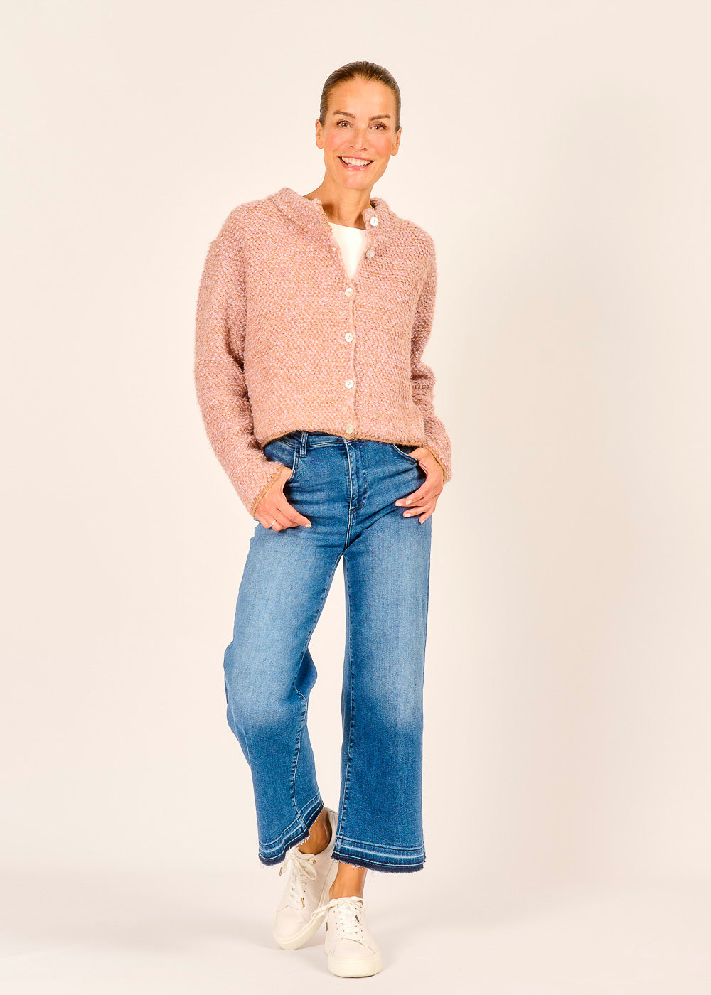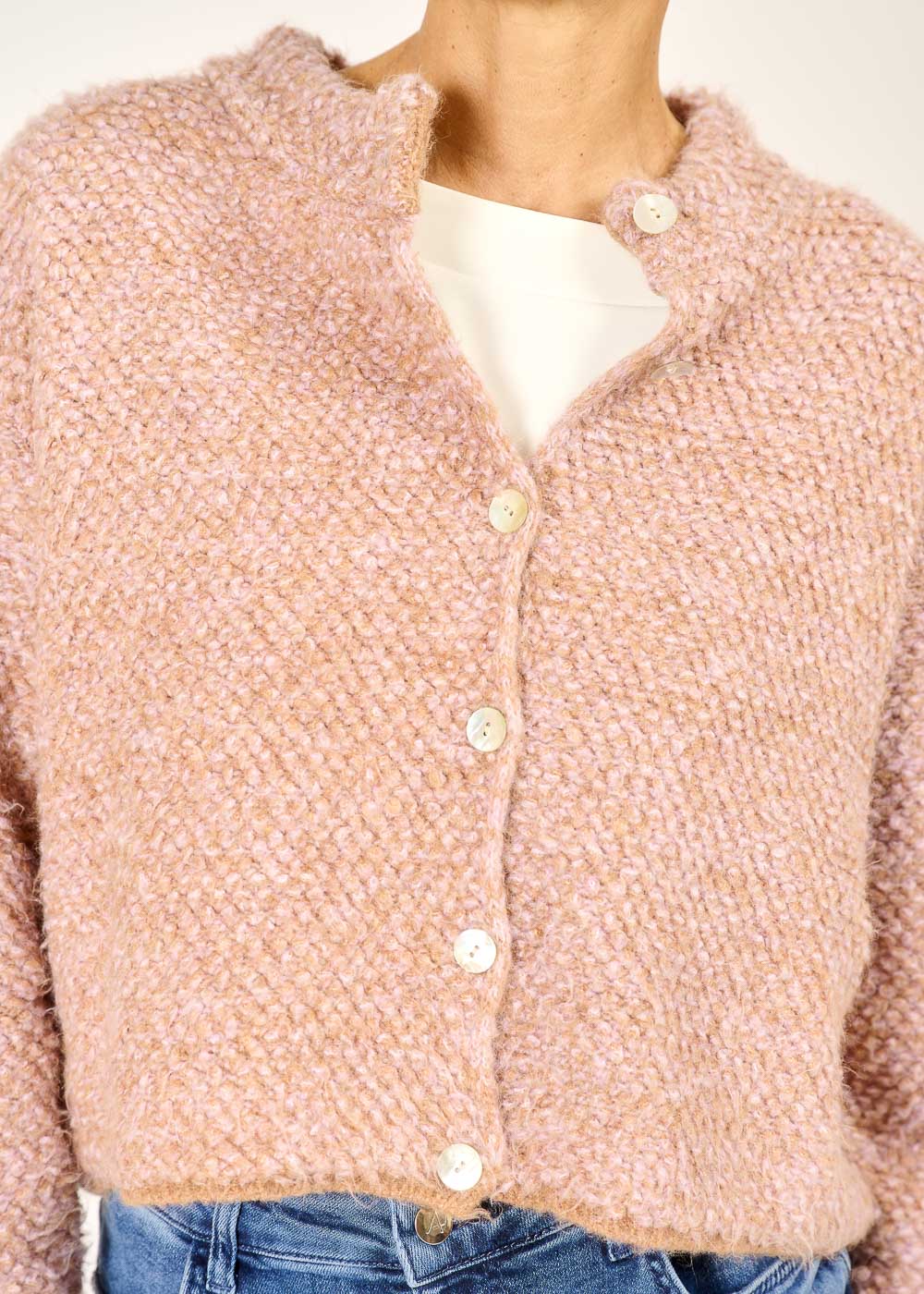 Dieser stilvolle Bouclé-Bomberino in zartem Rosa ist ein echtes Fashion-Statement, das eine unwiderstehliche Mischung aus Lässigkeit und Eleganz schafft. Die strukturierte Bouclé-Optik verleiht ihm eine luxuriöse Haptik und eine besondere Tiefe, während der kurze Schnitt eine moderne Silhouette zaubert. Ein vielseitiges Stück, das sowohl zu Jeans als auch zu einem Kleid einen einzigartigen Look kreiert.