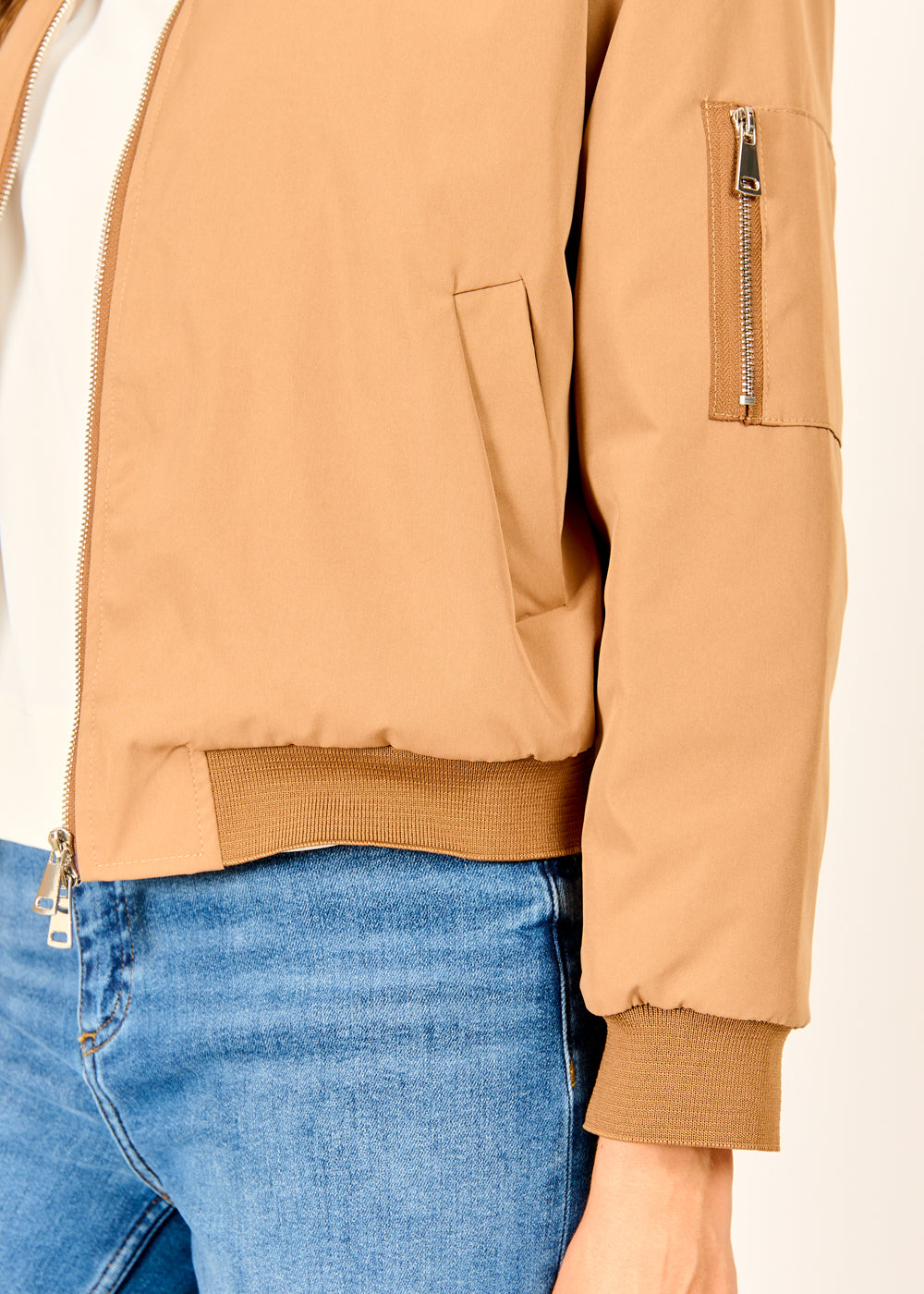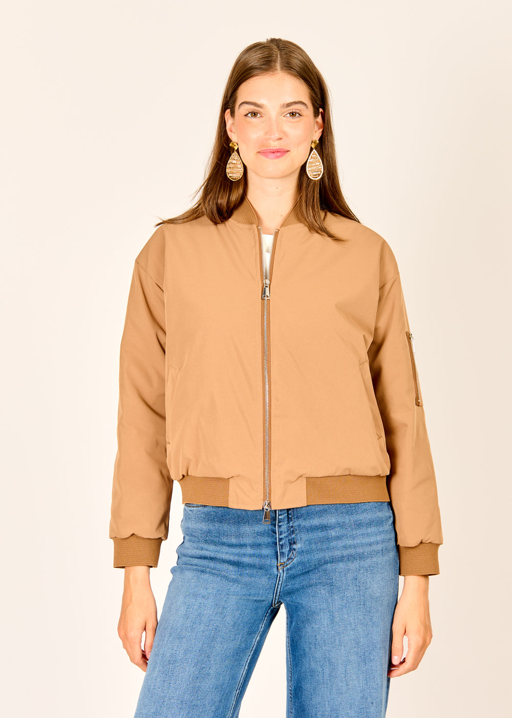 Ein stylisches Statement für jede Jahreszeit: die Bomberjacke in einem warmen Karamellton vereint sportliche Eleganz mit lässigem Komfort. Ihr leichtes Material und die klassische Passform machen sie zum idealen Begleiter für den Übergang und verleihen jedem Outfit eine moderne Note. Perfekt, um einen coolen und zugleich raffinierten Look zu kreieren.