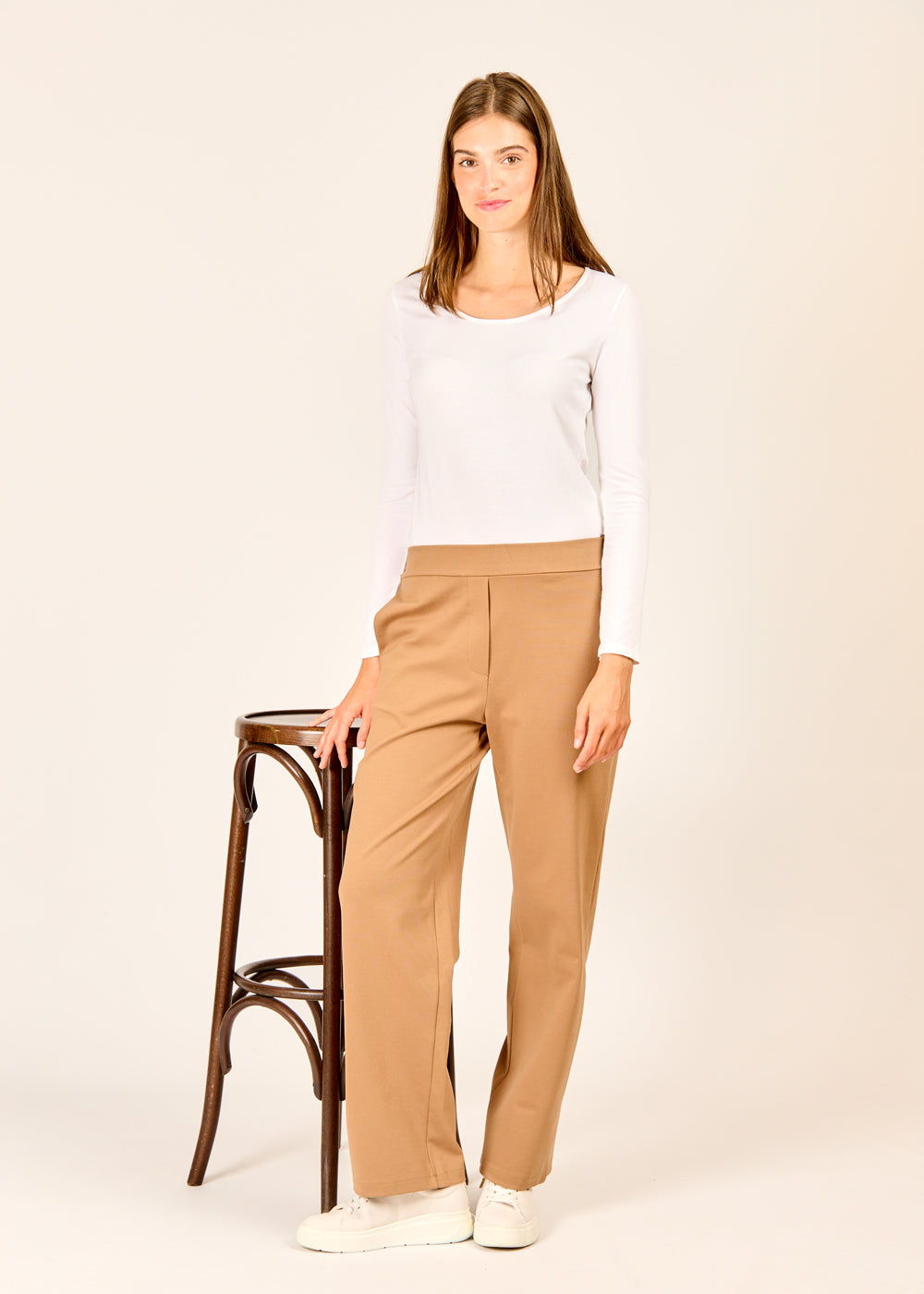 Diese stilvolle Hose in einem warmen Karamellton besticht durch ihre lässige Eleganz und den hohen Tragekomfort. Der moderne Schnitt sorgt für eine schmeichelhafte Silhouette, die sowohl im Büro als auch in der Freizeit überzeugt. Ein vielseitiges Basic, das mühelos zu verschiedenen Oberteilen und Schuhen kombiniert werden kann und jedem Outfit eine raffinierte Note verleiht.
