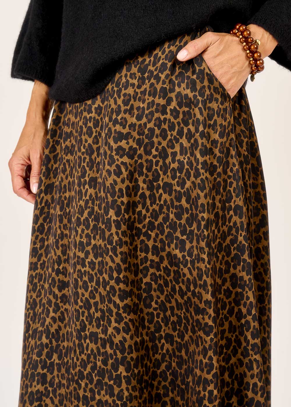 Bringe eine Prise Wildnis in deine Garderobe mit unserem aufregenden Animal-Rock. Der angesagte Leo-Print macht ihn zu einem echten Fashion-Statement, das sofort ins Auge fällt. Dank des fließenden Schnitts und des weichen Materials umspielt er deine Figur elegant und sorgt für einen tollen Look. Kombiniere ihn mit einem schlichten Oberteil und Stiefeln, um ein trendiges und dennoch mühelos schickes Outfit zu kreieren.