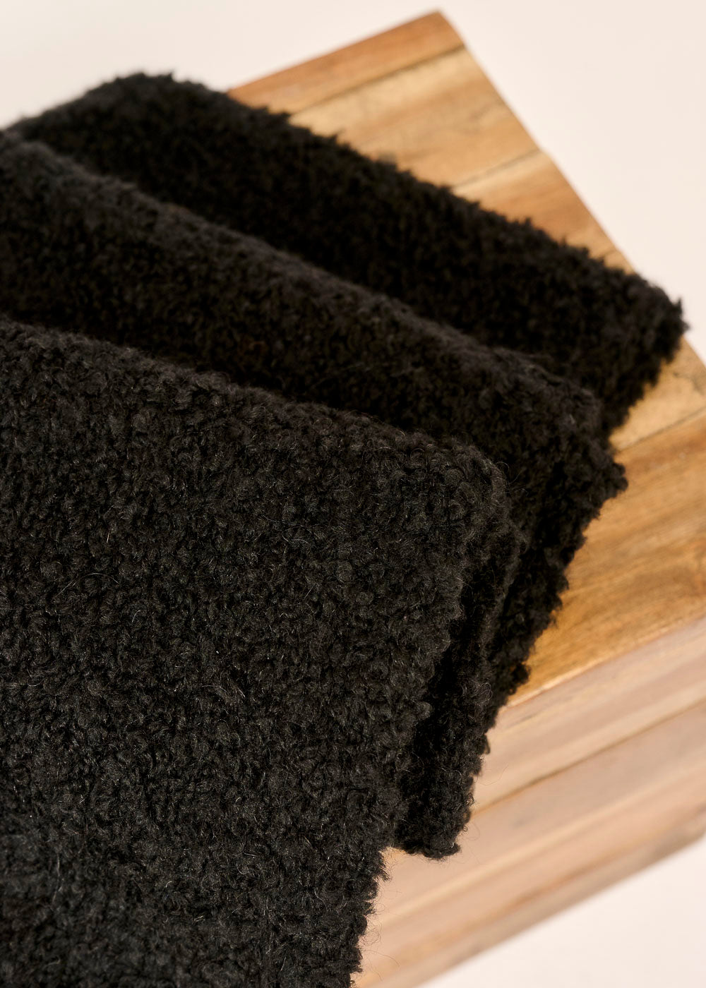 Dieser Schal aus weichem Bouclé hüllt dich in pure Gemütlichkeit und macht graue Wintertage ein Stück wärmer. Die flauschige Struktur schenkt dir ein luxuriöses Tragegefühl und bewahrt dich zuverlässig vor Kälte. In edlem Schwarz wirkt er zugleich modern und zeitlos – ein Accessoire, das sich mühelos jedem Stil anpasst. Ob als eleganter Akzent oder kuscheliges Essential, er verleiht deinem Outfit das gewisse Etwas.