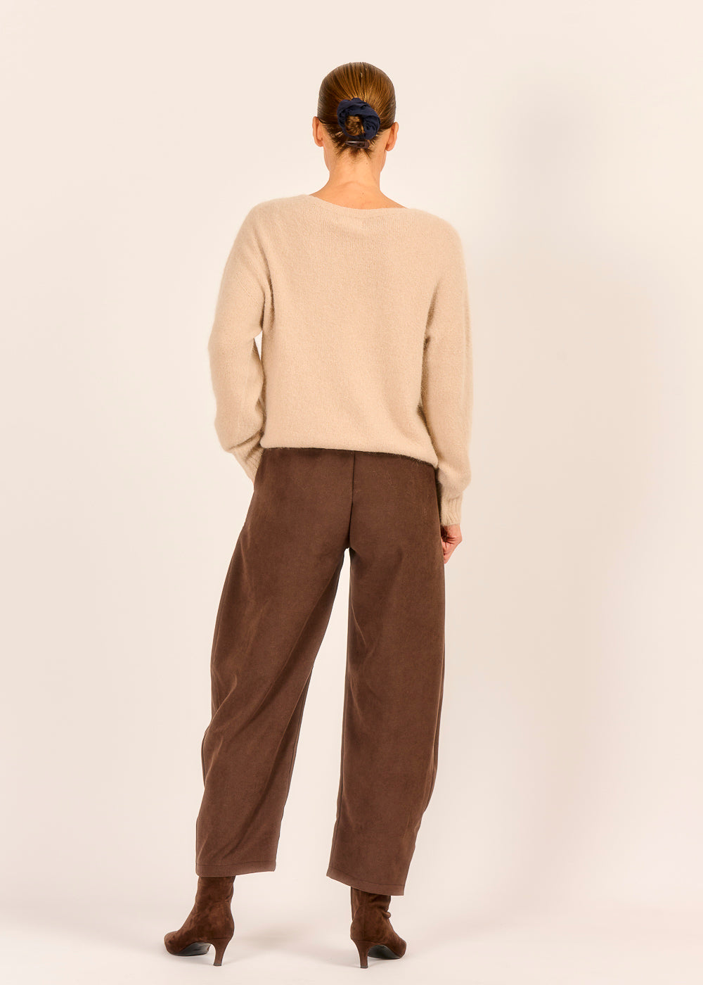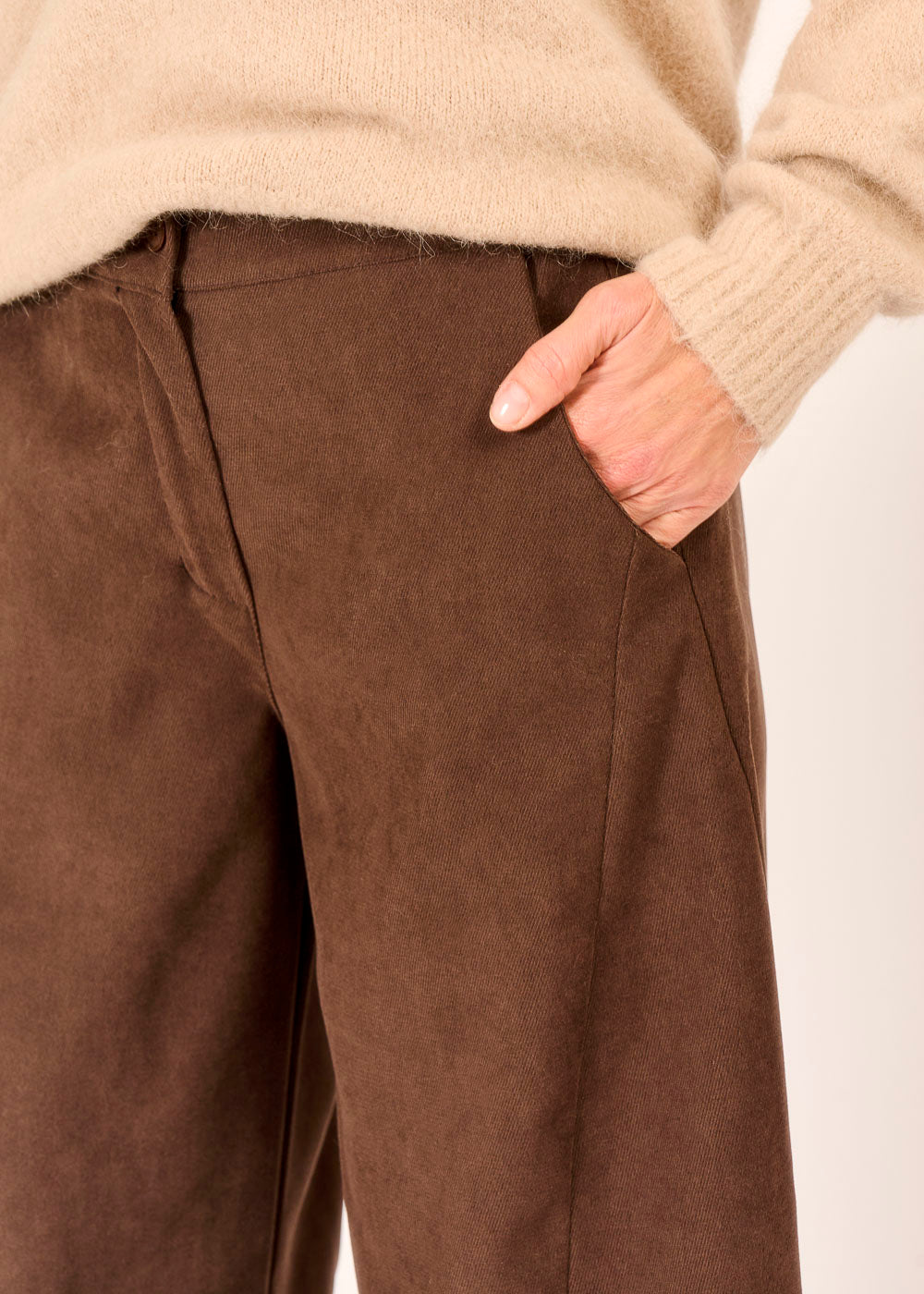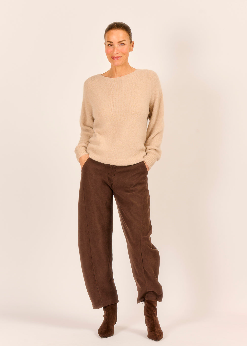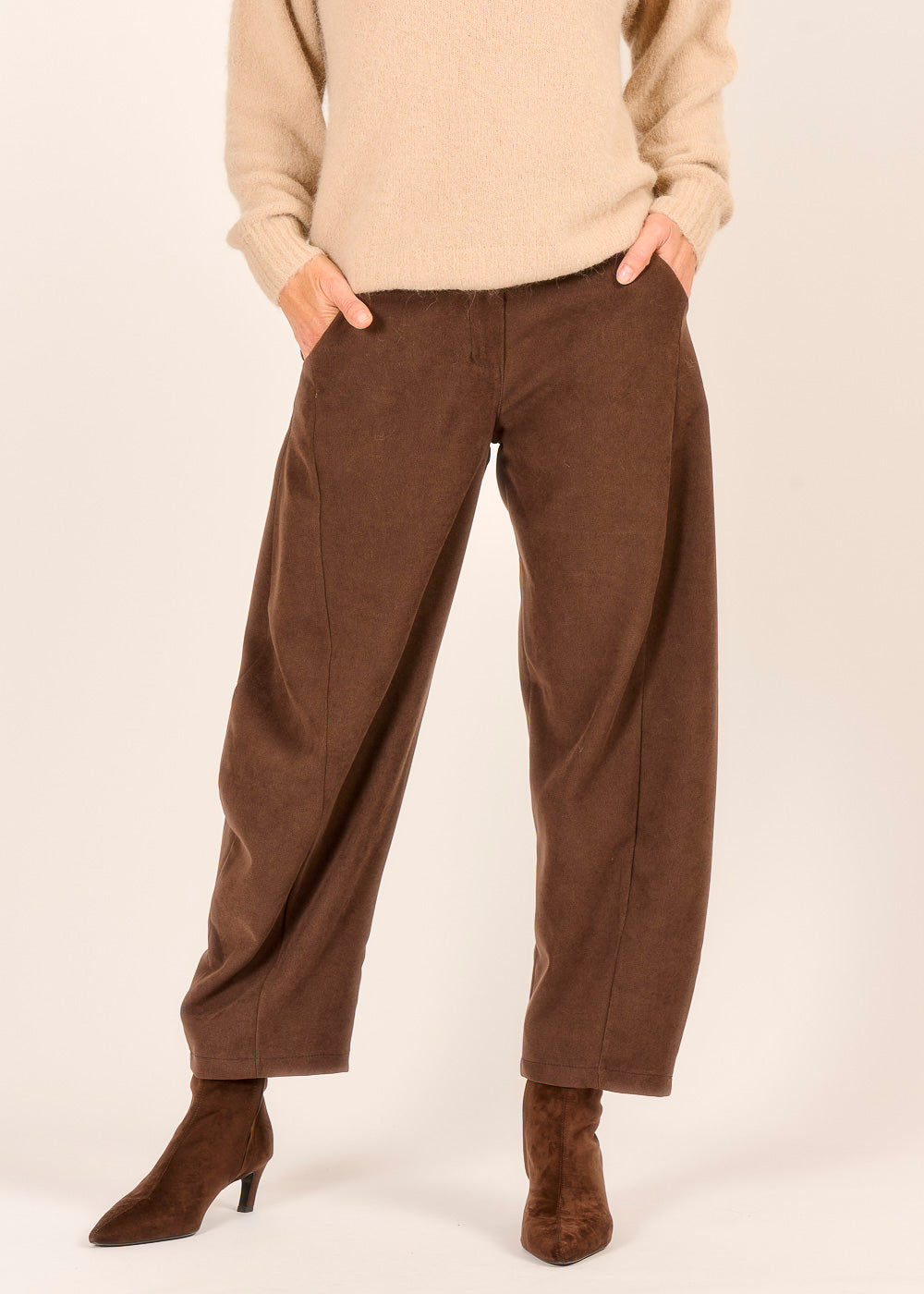 Diese Ballon-Pantalone in edlem Moka-Ton vereint zeitlose Eleganz mit lässiger Leichtigkeit. Ihr weich fließender Stoff und die sanft abgerundete Silhouette schmeicheln jeder Bewegung und verleihen dem Look eine mühelose Raffinesse. Perfekt für stilvolle Tage, an denen Komfort und Chic Hand in Hand gehen.