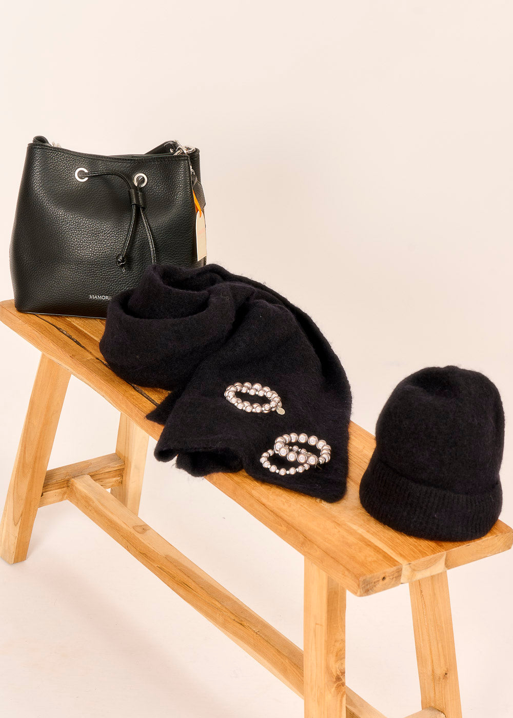 Erlebe unvergleichliche Wärme und Eleganz mit unserer Mütze Beretto in zeitlosem Nero, gefertigt aus der luxuriösen Mischung mit Babyalpaka – weich, leicht und unglaublich angenehm auf der Haut. Das perfekte Set wird durch den passenden Schal ergänzt, der Stil und Komfort harmonisch vereint. Gemeinsam schaffen sie ein Ensemble, das jeden Wintertag mit raffinierter Gemütlichkeit und edlem Charme begleitet.